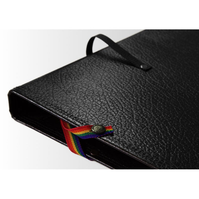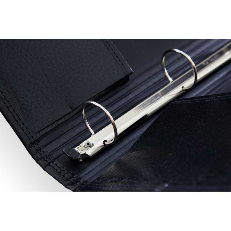 The convenient and comfortable hand strap at the back of this RingBinder allows you to hold it easily with one hand, and the deeply-textured leatherette helps dissipate the perspiration that can occur under hot stage lighting.