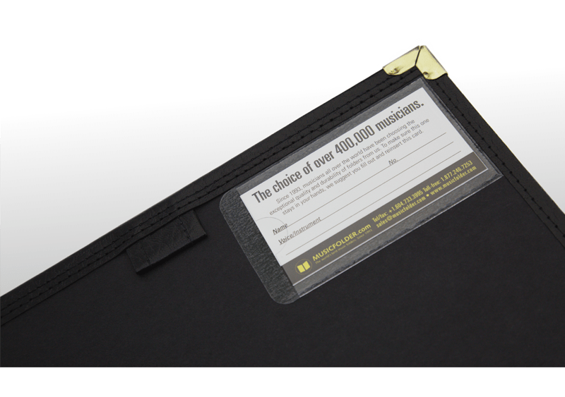 Information is visible right to the bottom of the page for your concert program or service leaflet, through the transparent pocket... you no longer need to pull your concert program out of a pocket to find (and show the audience that you don't know) what you're singing next... it's easily accessible to read through the plastic with this handy option.
