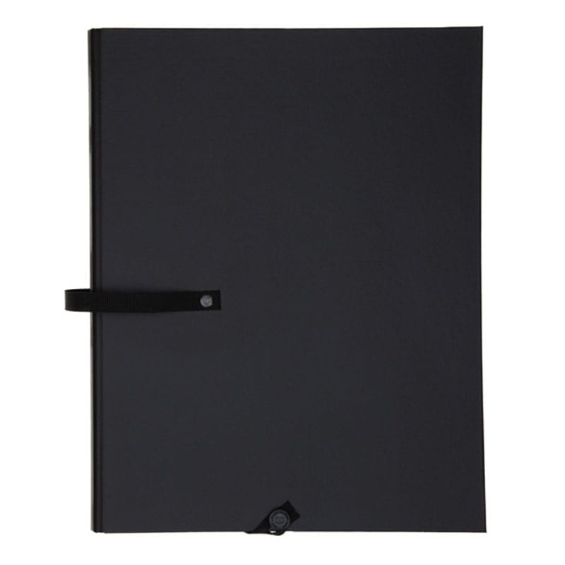 This folder is lighter, too! How did we do it? We left off the metal corner protectors, we found a great matte-black, coated cover laminate that's not the deep-grained leatherette, and we put normal rings in place of the fancy single-tab design in the other folder. To give you most control over your budget, some things are a-la-carte: clear leaflet pockets on the inside, for example. We recommend adding the clear pocket option at left as it's quite useful to read your program to the bottom of the page, through the transparent plastic.