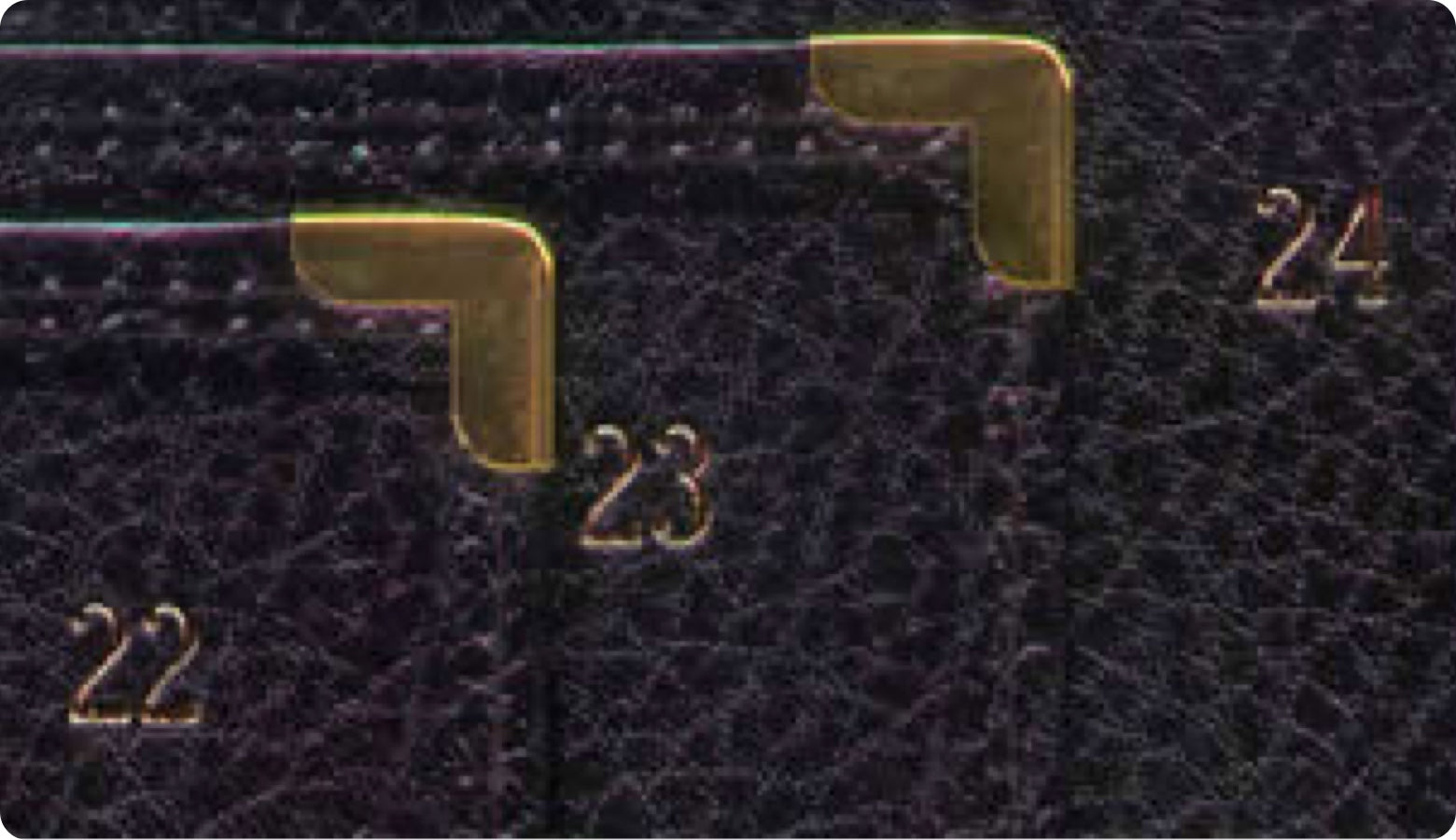 - Foil-stamped type often has no computer font equivalent; typestyles aren't matched.