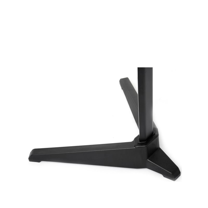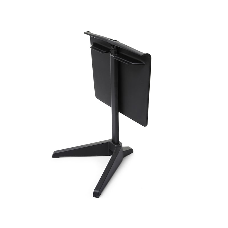 The base is designed to enable the stands to stack neatly together. The closed height is almost 25% less than comparable stands, so you can store Alto Stands where others won't fit, such as on shelves or under worktops.