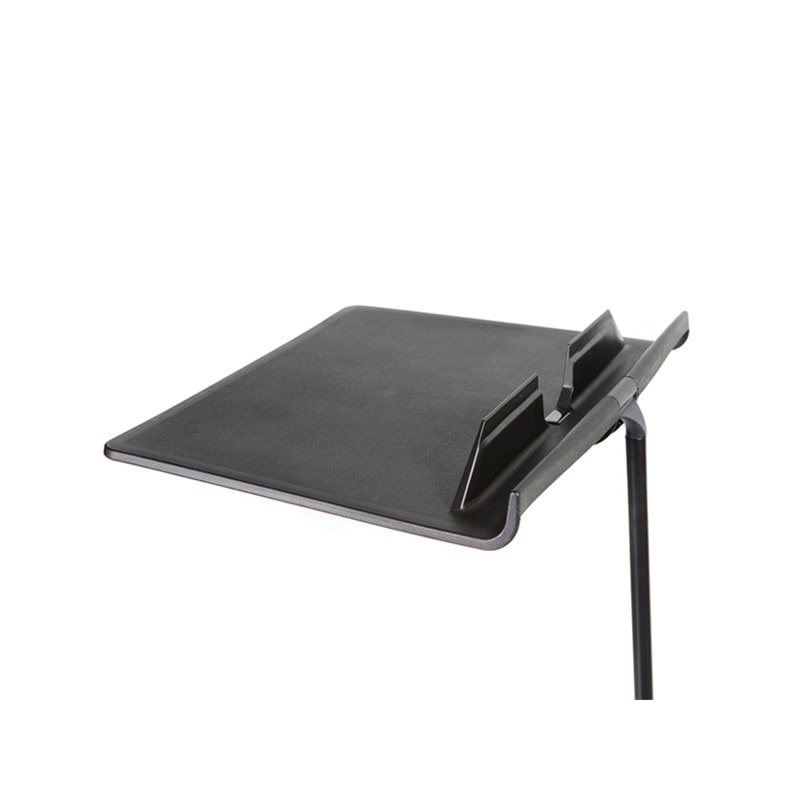 Friction locks automatically hold the tray at whatever angle you set. There are no knobs to fiddle with or lose, and it will never go slack.